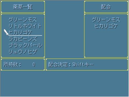 いい加減OP進めようといいつつ薬草配合システム組んでました(殴)